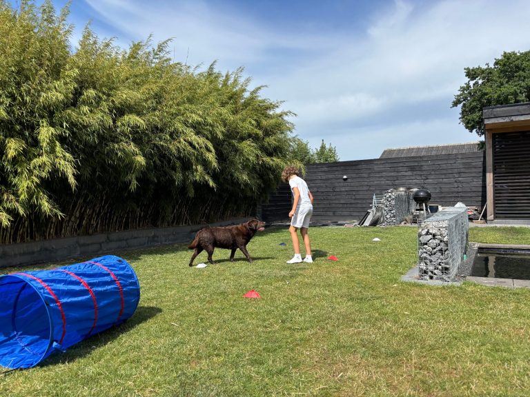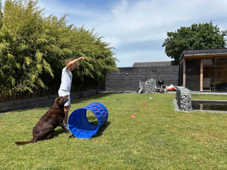 Tijdens sommige sessies werkt er een hele bijzondere collega met mij mee: Ruby, mijn lieve labrador van 9,5 jaar oud. Met haar rustige en zachtaardige aanwezigheid helpt ze kinderen zich sneller op hun gemak te voelen. Ze oordeelt niet, stelt geen vragen, ze is er gewoon — precies zoals jij er bent. Voor veel kinderen werkt haar nabijheid kalmerend en veilig. Ze durven meer te delen, lachen sneller, en kunnen even hun gedachten verzetten door haar te aaien of samen met haar iets te doen. Zo ontstaat er ruimte voor echte verbinding en groei. Mijn hond is geen therapiehond, maar wel een trouw maatje in het coachproces — zacht, vriendelijk en altijd eerlijk.